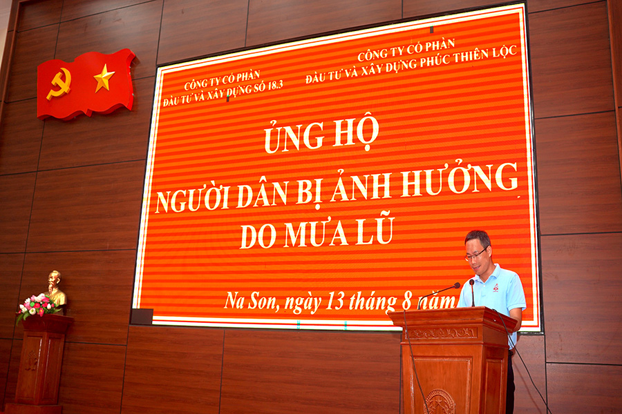 Phát biểu trong chương trình, Ông Vũ Văn Dũng – Chủ tịch Công đoàn Công ty Licogi 18.3 chia sẻ “Hưởng ứng lời kêu gọi từ UBMTTQ xã Na Son, Ban lãnh đạo Công ty Licogi 18.3 ủng hộ nhân dân xã Na Son 02 tấn gạo, trị giá 30 triệu đồng; BCH Công đoàn Công ty Licogi 18.3 phát động CBCNV Công ty đóng góp 01 ngày công lao động, ủng hộ 64 triệu đồng gửi đến chính quyền địa phương để chuyển đến các hộ gia đình bị thiệt hại nặng trong đợt lũ quét vừa qua, mong bà con khắc phục khó khăn, sớm ổn định sinh hoạt sản xuất”.