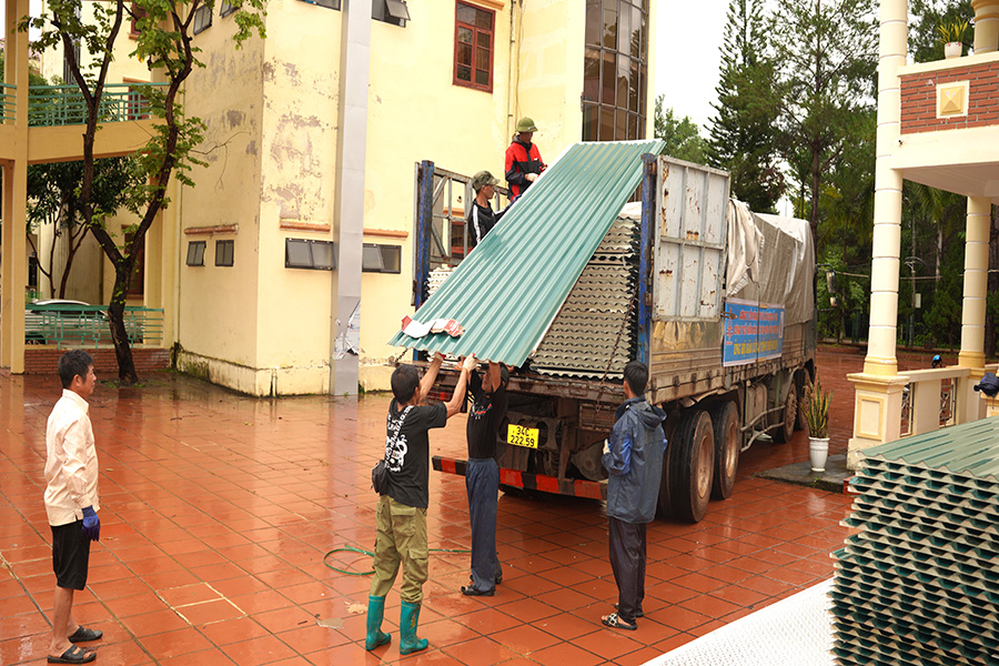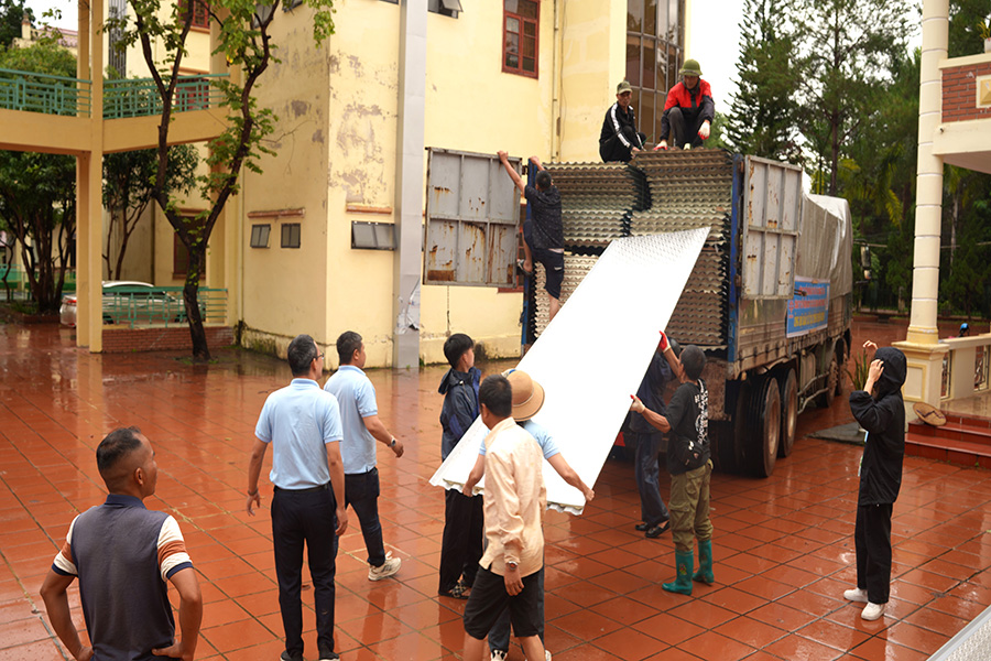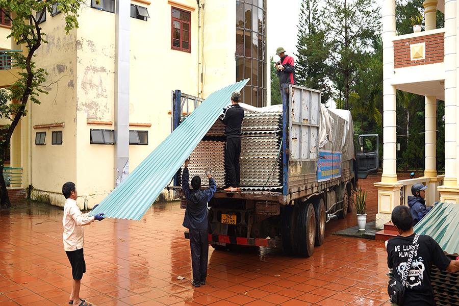 Xe chở Tấm Tôn lợp mái nhà ủng hộ nhân dân vùng lũ xã Na Son