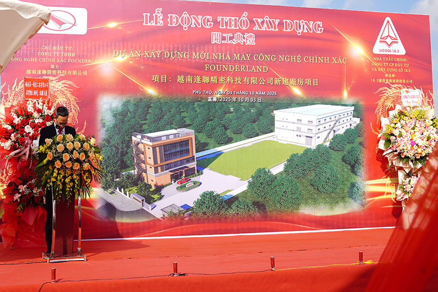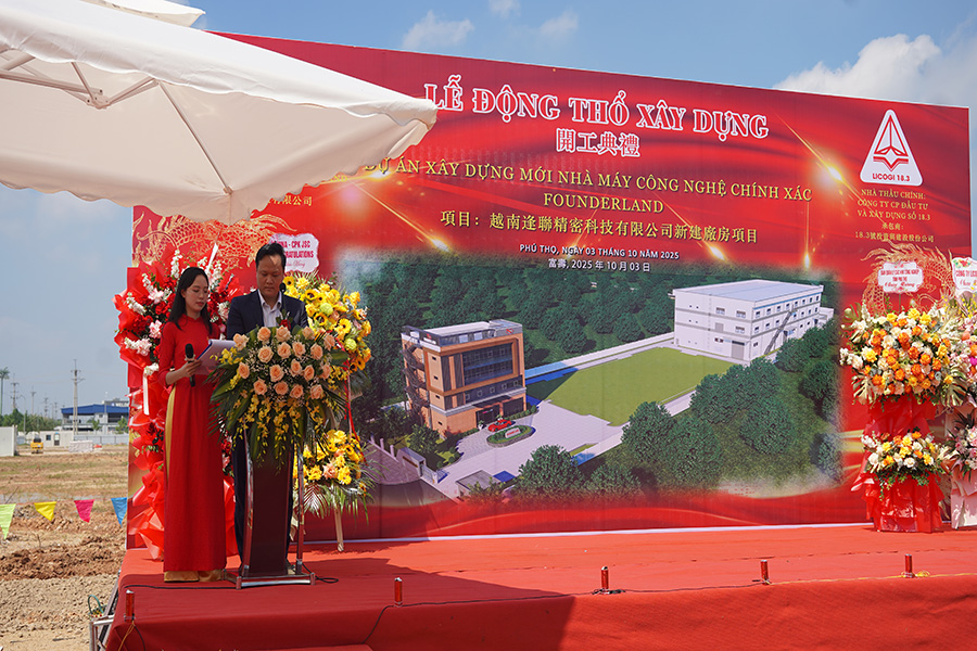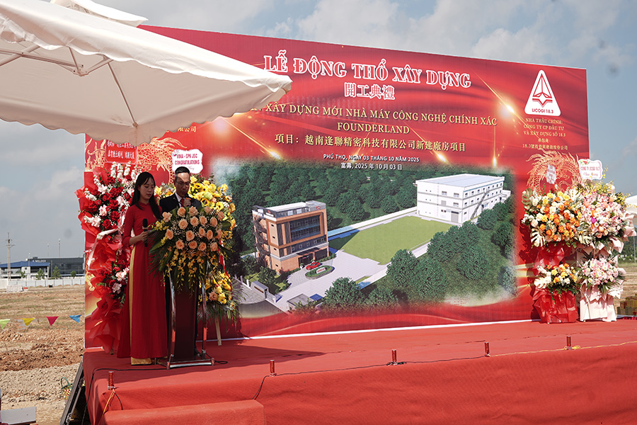 Phát biểu tại buổi Lễ, Bà 杨斐茹 女士 (YÁNG FĚI RÚ) – Chủ tịch công ty FounderLand Việt Nam đã bày tỏ niềm tin khi lựa chọn KCN Bá Thiện là nơi xây dựng dự án.Đồng thời bà cũng cảm ơn sâu sắc tới Licogi 18.3 đã chuẩn bị chu đáo cho buổi khởi công được diễn ra trọn vẹn.Với kinh nghiệm nhiều năm xây dựng, bà chúc nhà thầu Licogi18.3 sớm hoàn thành và bàn giao dự án theo đúng tiến độ hợp đồng đã ký kết.