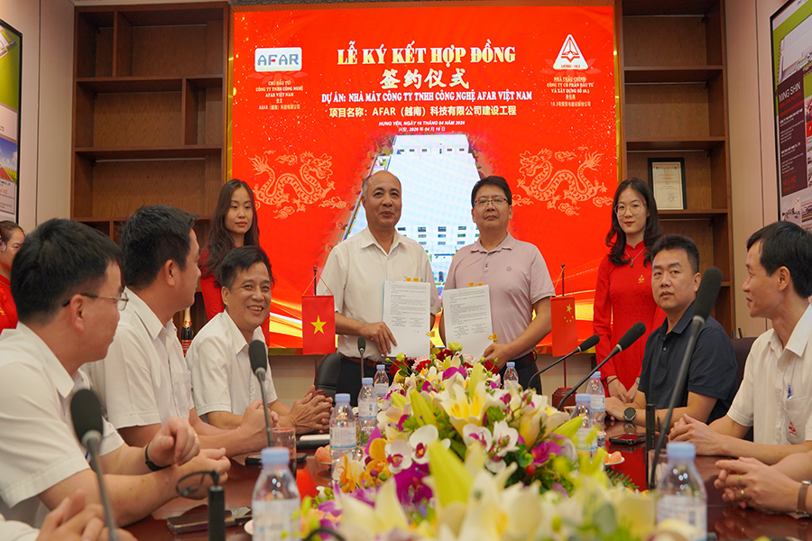 Trong không khí trang trọng của buổi lễ, trước sự chứng kiến của Ban Lãnh đạo cấp cao hai bên, ông Lưu Tuấn Khanh – Giám đốc Licogi 18.3 và Người đại diện được ủy uyền là: Ông BAO YUNDONG – Giám đốc Công ty TNHH Công nghệ AFAR Việt Nam đã cùng đặt bút ký kết Hợp đồng thi công xây dựng, chính thức khởi động Dự án.