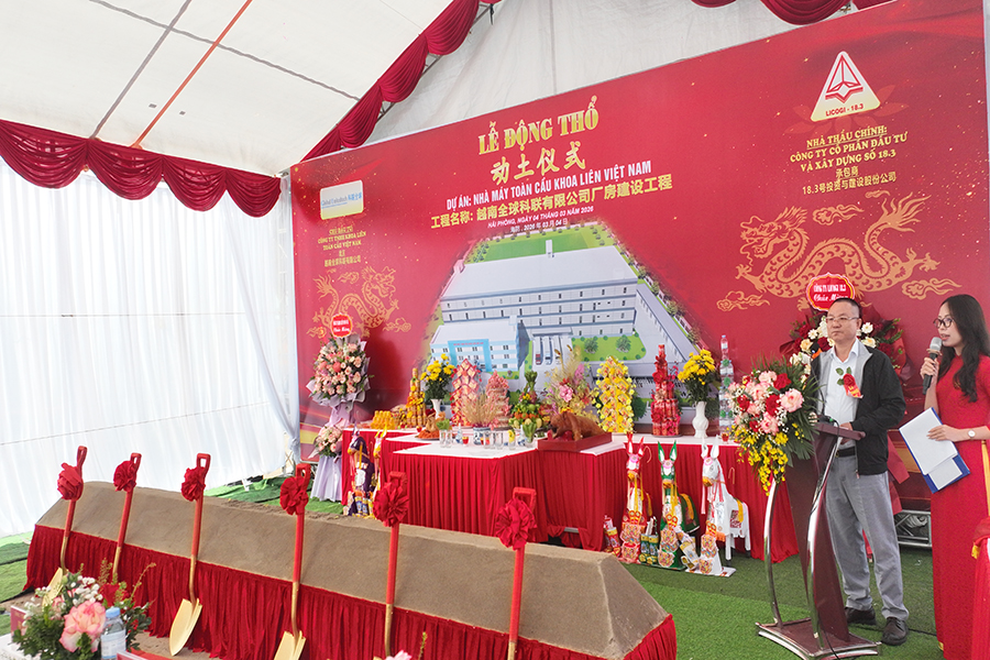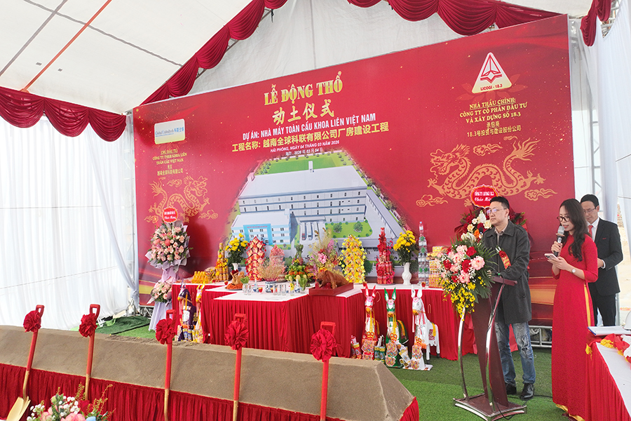 Phát biểu tại buổi lễ, đại diện Chủ đầu tư – Công ty TNHH Khoa Liên Toàn Cầu Việt Nam cho biết, trong những năm qua, mặc dù phải đối mặt với nhiều biến động của tình hình kinh tế thế giới và những khó khăn chung của thị trường, doanh nghiệp vẫn duy trì hoạt động ổn định và từng bước phát triển. Việc triển khai dự án Nhà máy Toàn Cầu Khoa Liên Việt Nam là bước đi quan trọng nhằm mở rộng quy mô sản xuất, nâng cao năng lực hoạt động và đáp ứng nhu cầu phát triển trong giai đoạn tiếp theo.